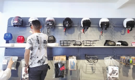 “最近掀起了一陣頭盔熱,全國都在搶頭盔。店內的庫存賣完后,我們也進不到新貨了。”騰飛電動車店主指著店內僅剩下的一頂粉色半包頭盔樣品說道。