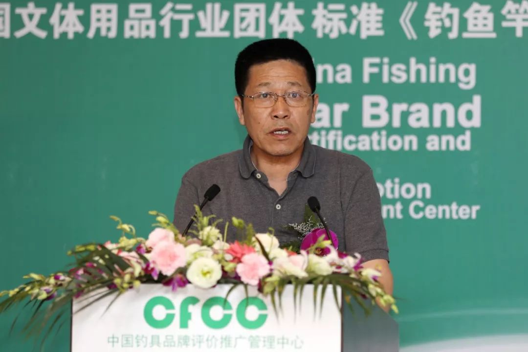 中國文教體育用品協會釣具品牌評價推廣管理中心主任丁龍興致辭