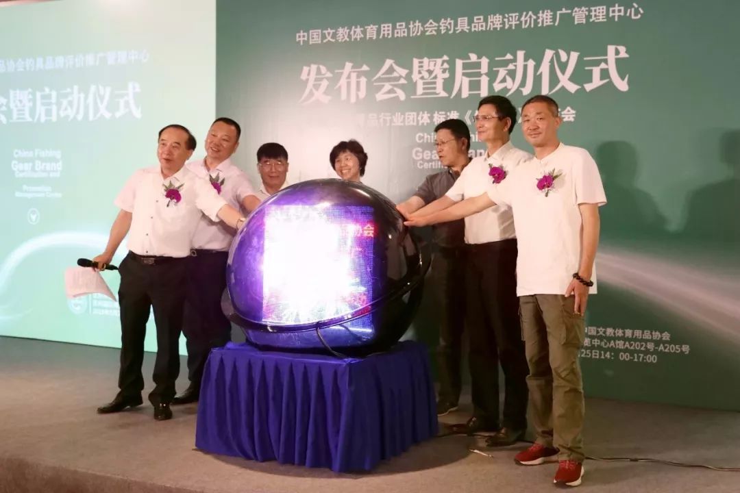 啟動儀式由田寶全先生主持,易曉俐女士、郝鋼、賀定芳、中國文教體育用品協會釣具品牌評價推廣管理中心主任丁龍興、副主任崔秉亮、柴曉斌、田寶全一起觸碰象征啟動儀式的激光球。
