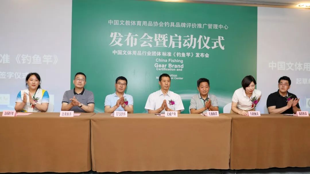 郝鋼宣讀了釣魚竿團體標準的發布公告;賀定芳講述了釣魚竿團體標準在釣具中的重要作用;團體標準《釣魚竿》主筆單位——威海光威戶外裝備有限公司技術部部長李俊三做了標準的先進性解讀報告,用精準的參數和科學的依據對我國現行大量使用的釣魚竿標準做了完整的敘述,贏得與會代表的認可。參與起草團體標準釣魚竿的代表單位品牌:光威、海濱、寶飛龍、久旺、法萊、久揚、迪威、威海國家漁具檢測中心共同簽署《自我聲明承諾書》,以實際行動保障自產釣魚竿符合應有的標準和質量要求