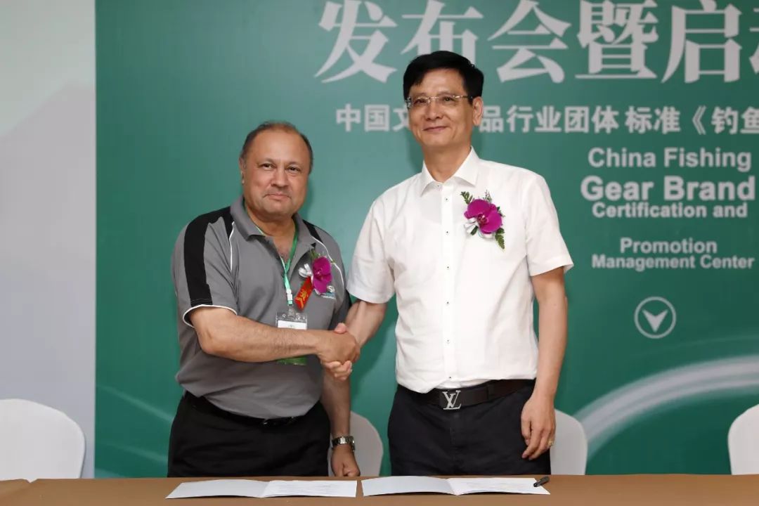 丁龍興代表管理中心與澳大利亞休閑釣魚協會主席羅素簽定了雙方品牌產品合作備忘錄。